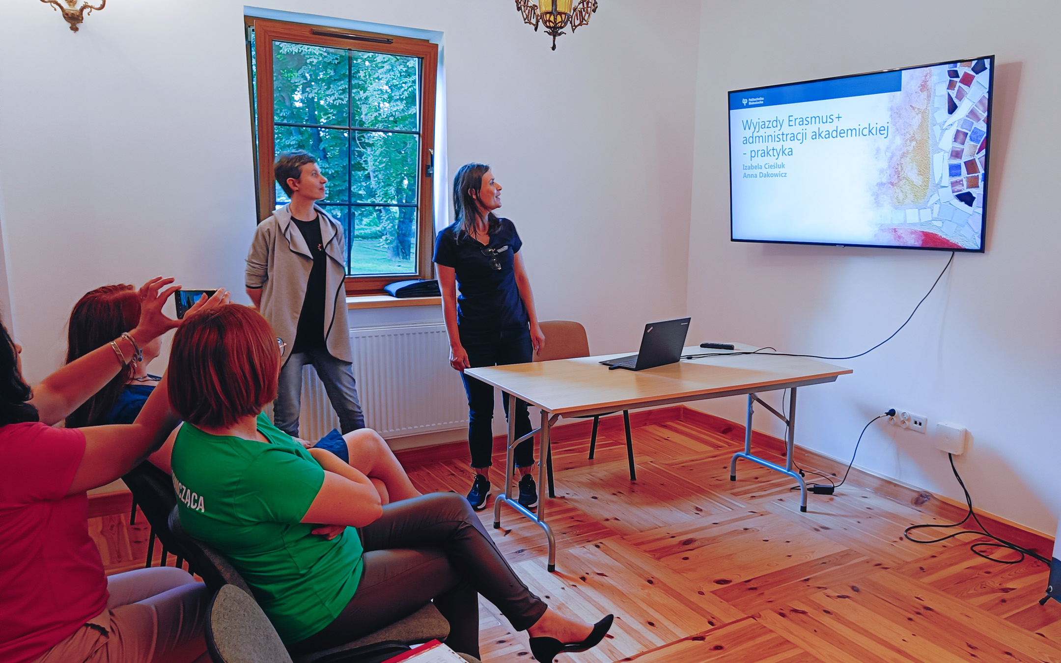 - Kierownik Działu Mobilności i Obsługi Umów Międzynarodowych PB Agata Dziekońska zapoznała uczestników z procedurami dotyczącymi wyjazdów pracowników w ramach programu Erasmus KA131 oraz KA171. Natomiast przedstawicielki Dziekanatu Wydziału Elektrycznego PB Anna Dakowicz oraz Izabela Cieśluk opowiedziały o swoich doświadczeniach z pobytu w Hiszpanii, gdzie wzięły udział w International Staff Week organizowanym przez Universidad de Sevilla.