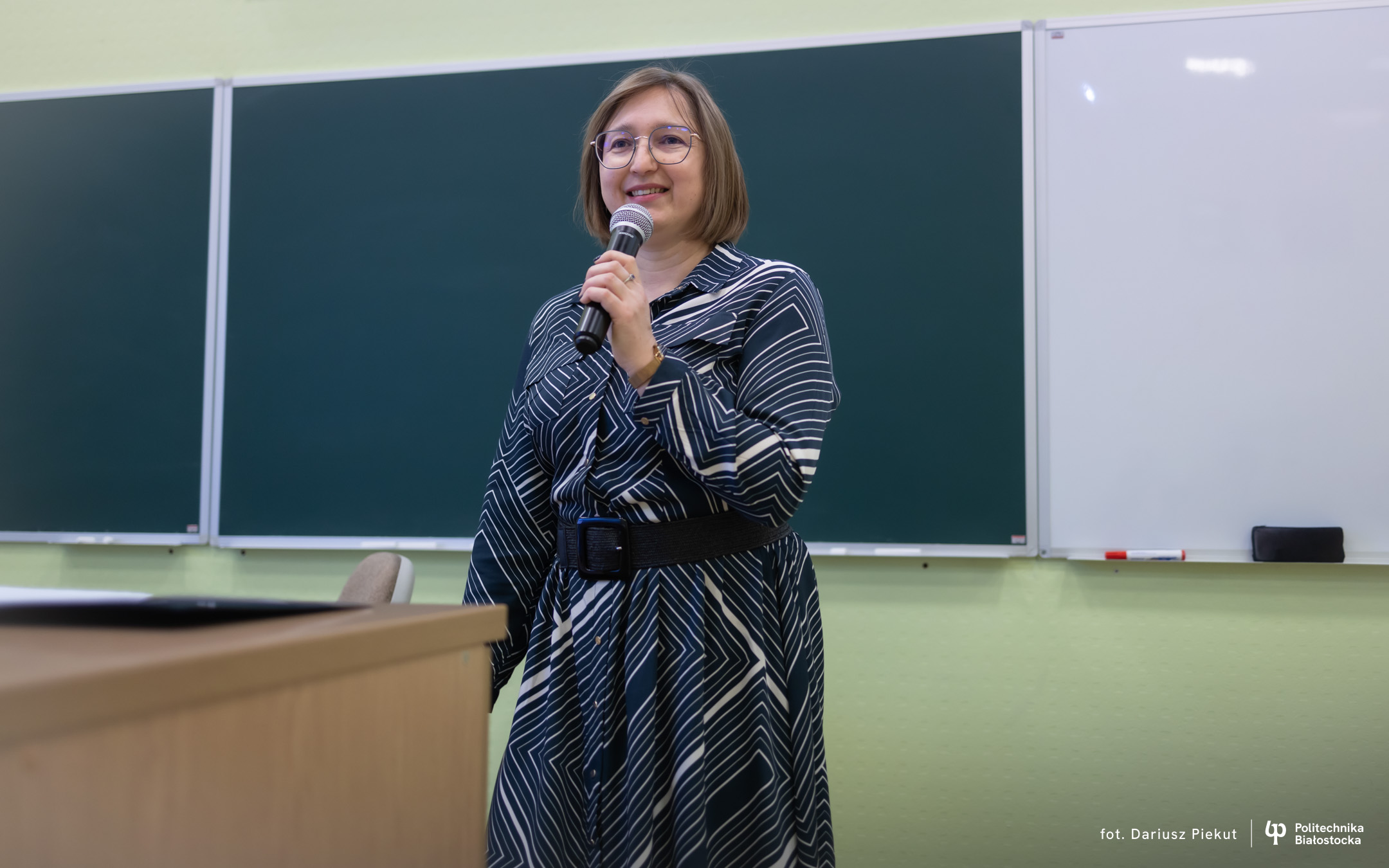Tematy związane z procedurami wsparcia osób w procesie tranzycji płci oraz przeciwdziałania dyskryminacji, obowiązującymi w Politechnice Białostockiej, przybliżyła dr Joanna Szydło – Pełnomocnik Rektora do spraw Równego Traktowania i Przeciwdziałania Dyskryminacji w Politechnice Białostockiej.