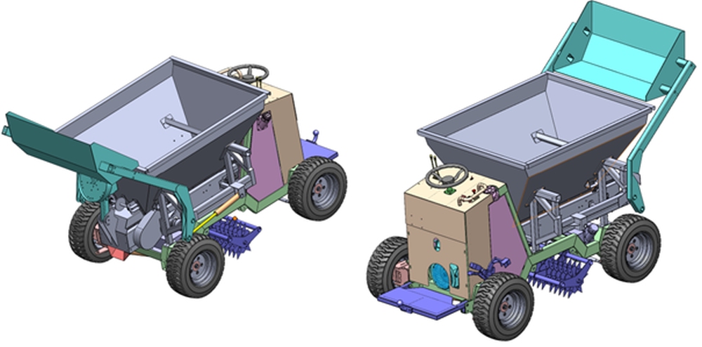 – Konstrukcja została wyposażona w zdejmowany zasobnik na piasek, torf, czy materiał siewny, który za pomocą przenośnika podłogowego podawany jest do układu rozsypującego – wyjaśnia prof. Szusta. – Układ rozsypujący pozwala precyzyjnie dawkować materiał na podłoże. Dodatkowo, w zimie, ten rozsiewacz może jeździć po chodnikach i rozsypywać mieszankę solno-piaskową.