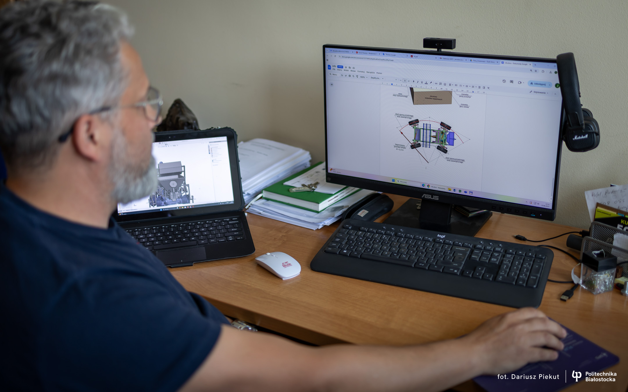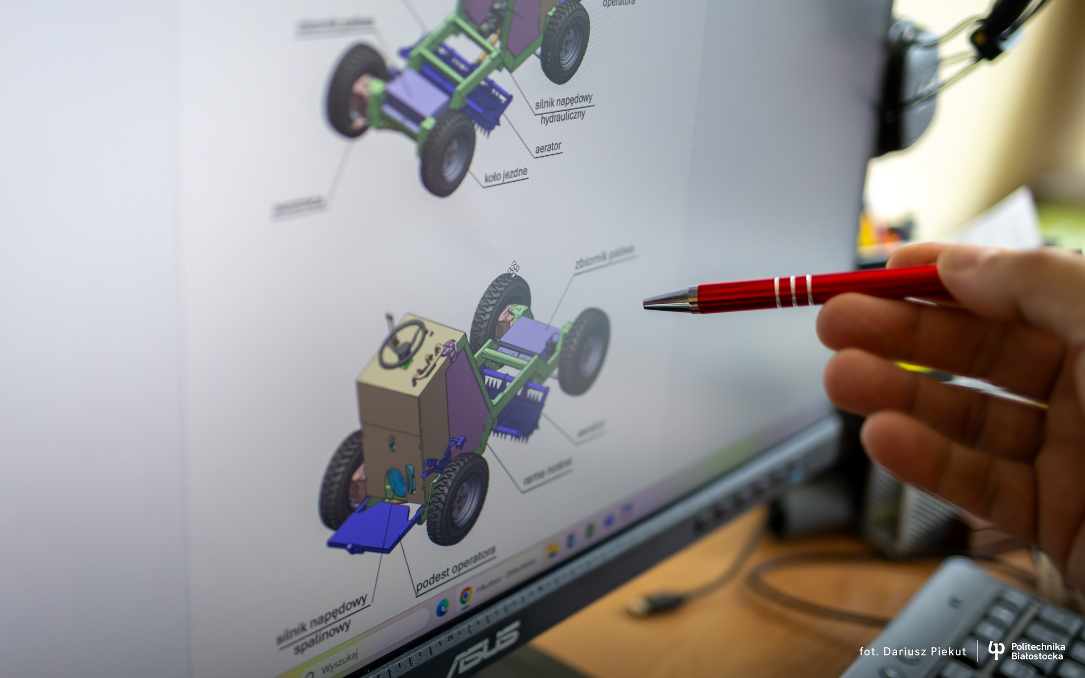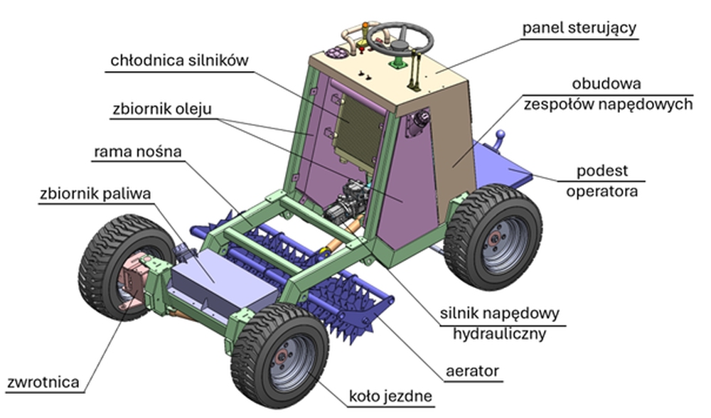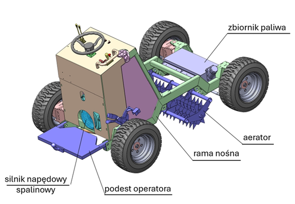 – Brak jest konstrukcji które umożliwiałyby rozsypywanie materiału siewnego, torfu, piasku na trawniku czy na polach golfowych a przy tym mogłyby w jednym przejeździe rozsypać, zagładzić, napowietrzyć na przykład trawnik – mówi dr hab. inż. Jarosław Szusta, prof. PB z Katedry Budowy i Eksploatacji Maszyn Wydziału Mechanicznego Politechniki Białostockiej.