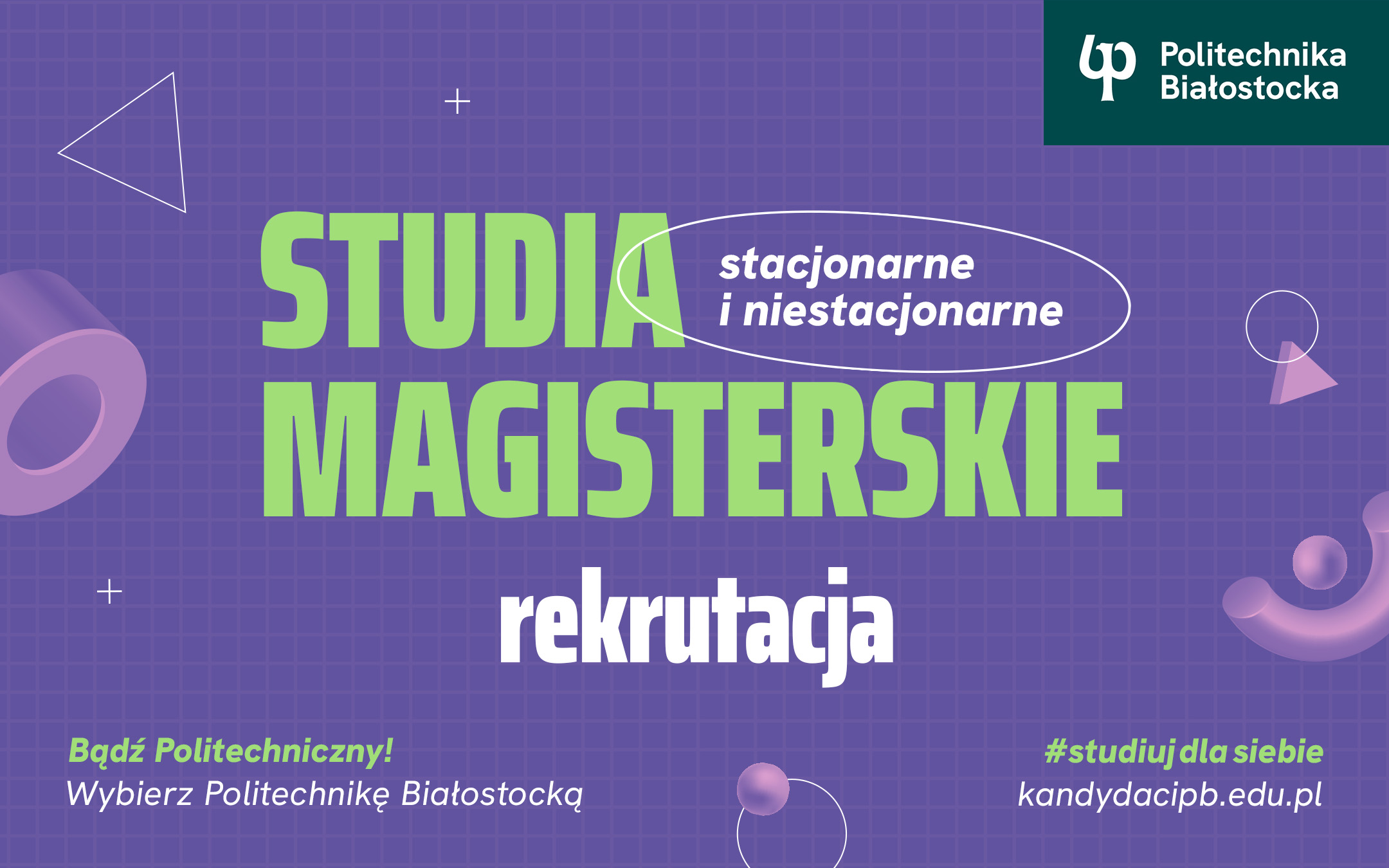 Studia magisterskie w Politechnice Białostockiej, rozpoczynające się w lutym 2026 roku, to 18 kierunków studiów stacjonarnych i niestacjonarnych do wyboru. Nowy kierunek to grafika – studia niestacjonarne drugiego stopnia. Zapisy ruszają 12 stycznia i potrwają do 9 lutego (na grafikę do 6.02).