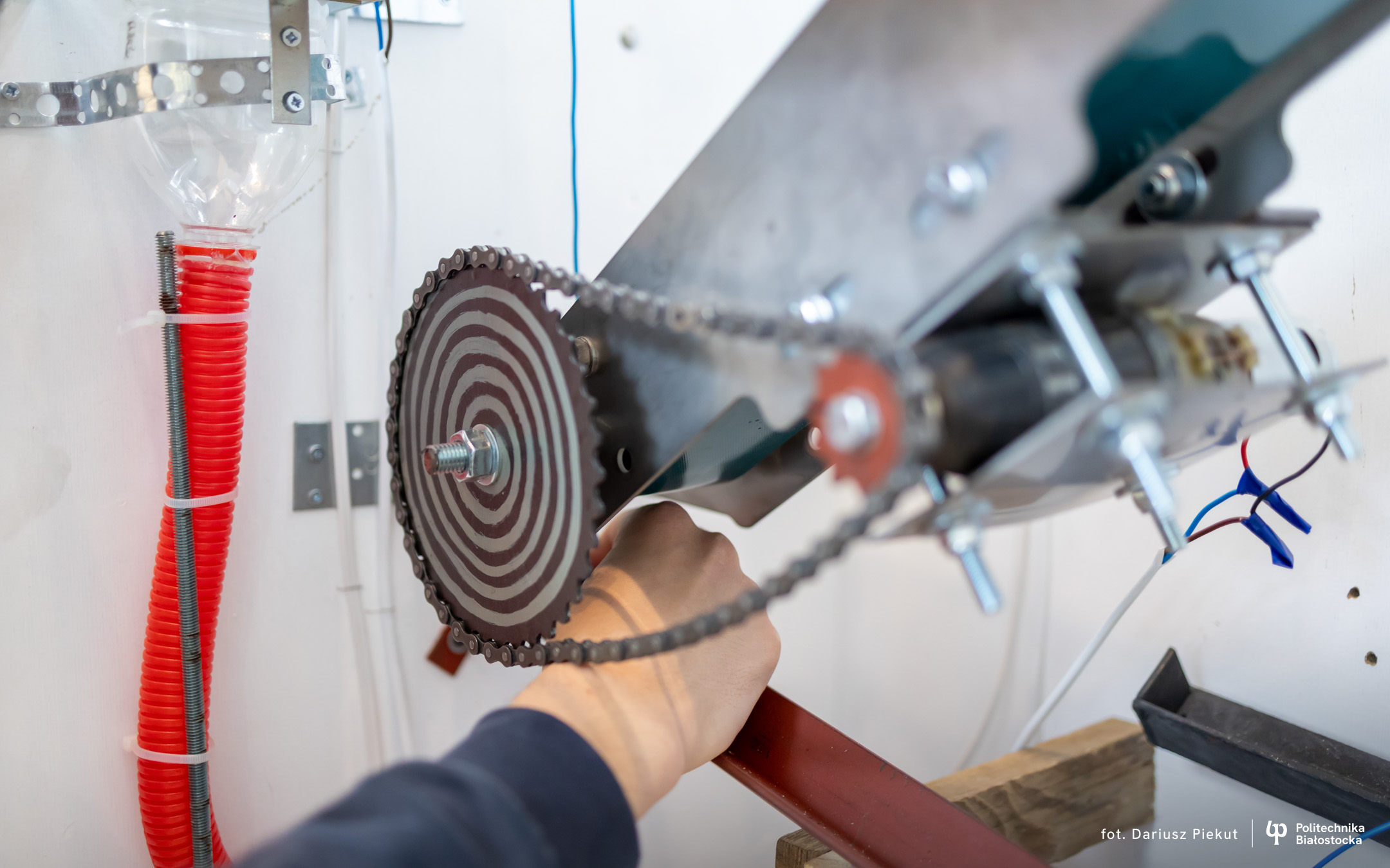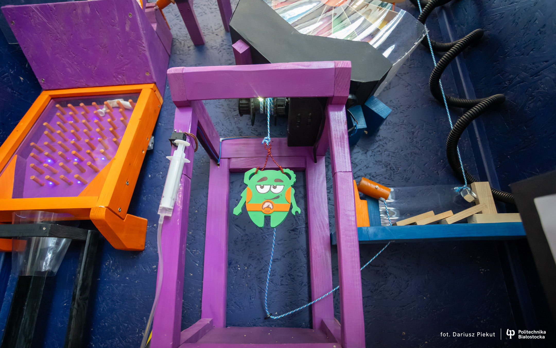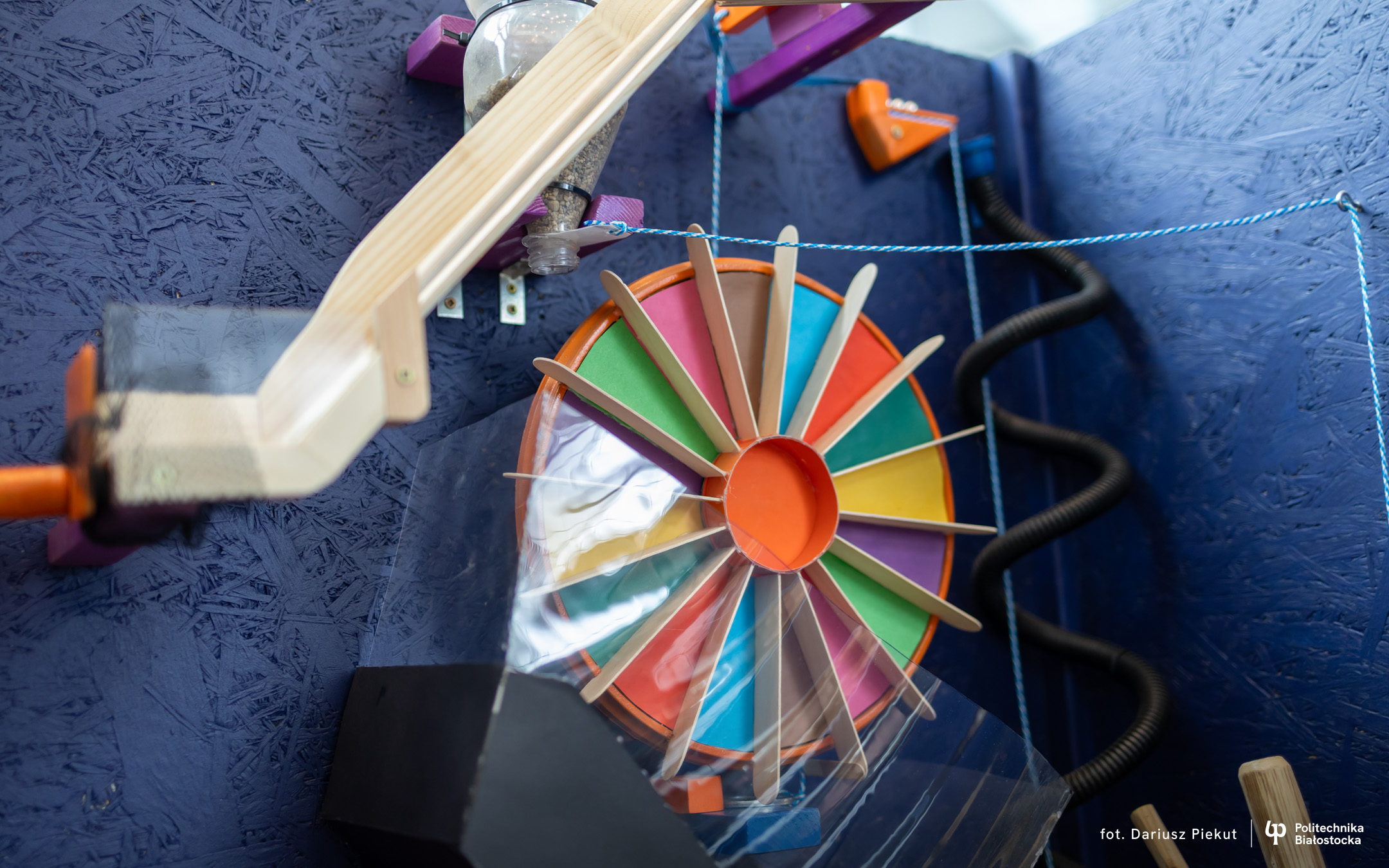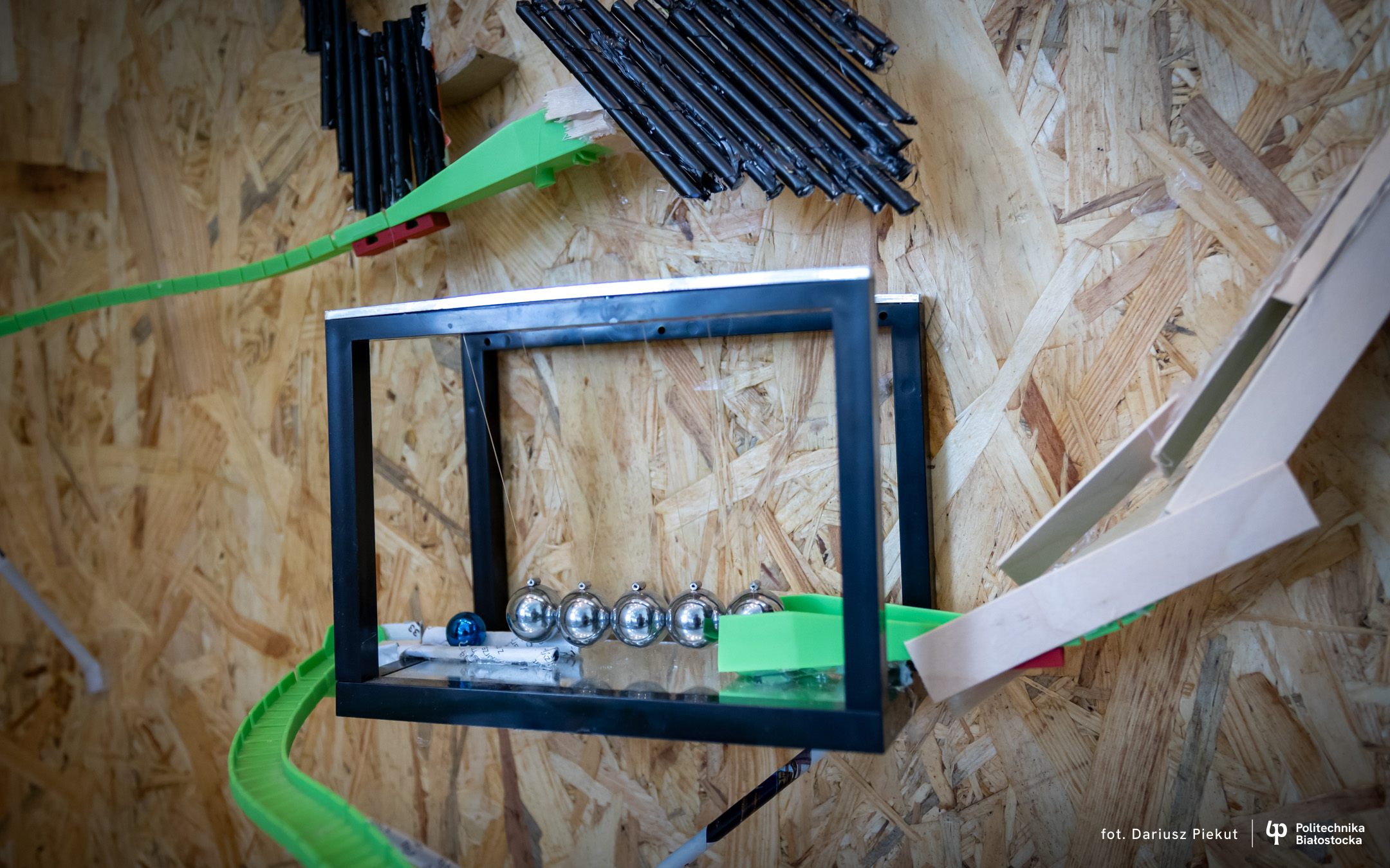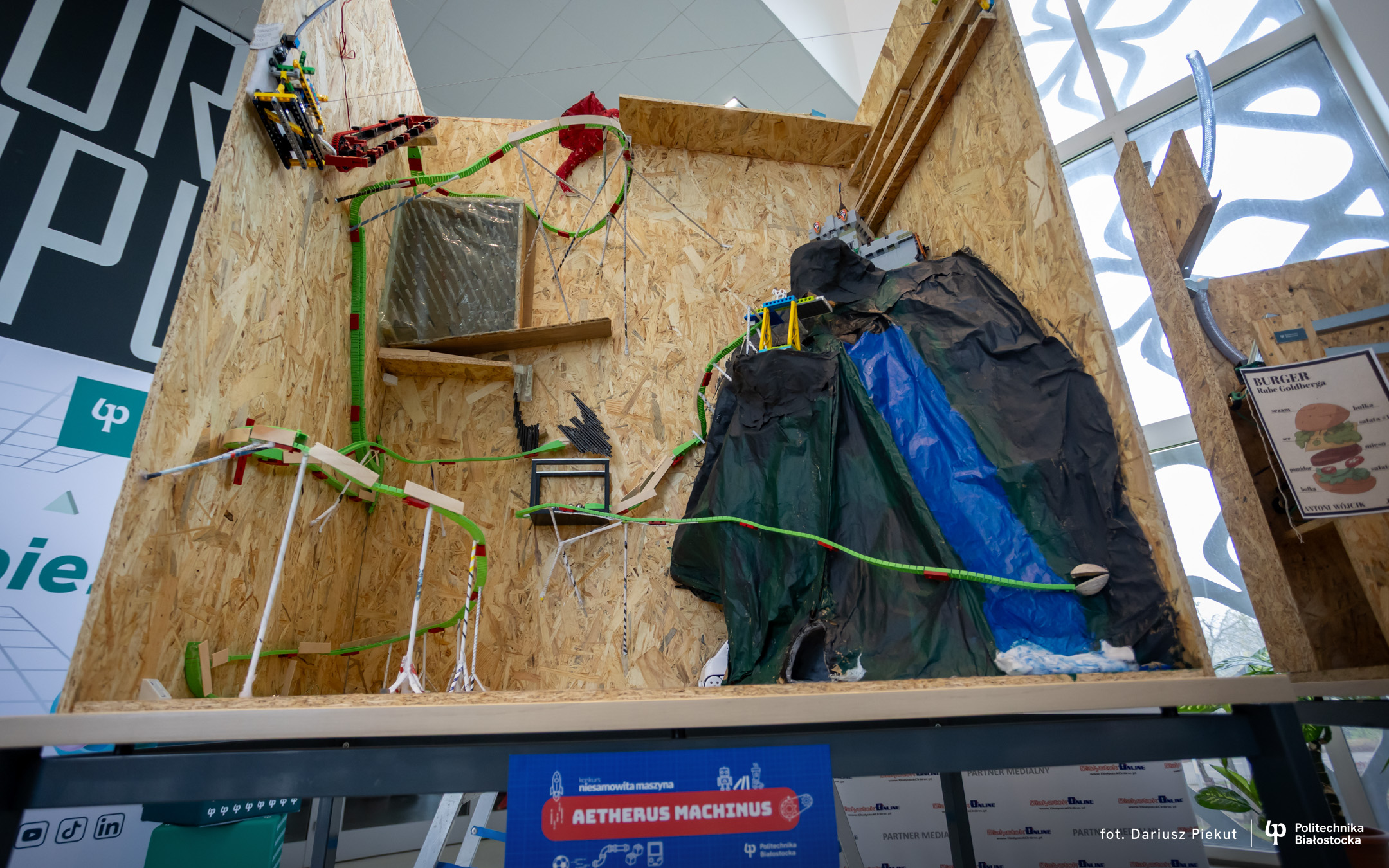 „Niesamowita maszyna” to konkurs o indeks, który po raz ósmy organizuje Politechnika Białostocka dla uczniów szkół ponadpodstawowych, w szczególności maturzystów. Aby wziąć w nim udział należy stworzyć urządzenie na wzór maszyny Rube’a Goldberga, w którym połączone ze sobą mechanizmy, działające na zasadzie domina, doprowadzają do końcowego, efektownego finału.