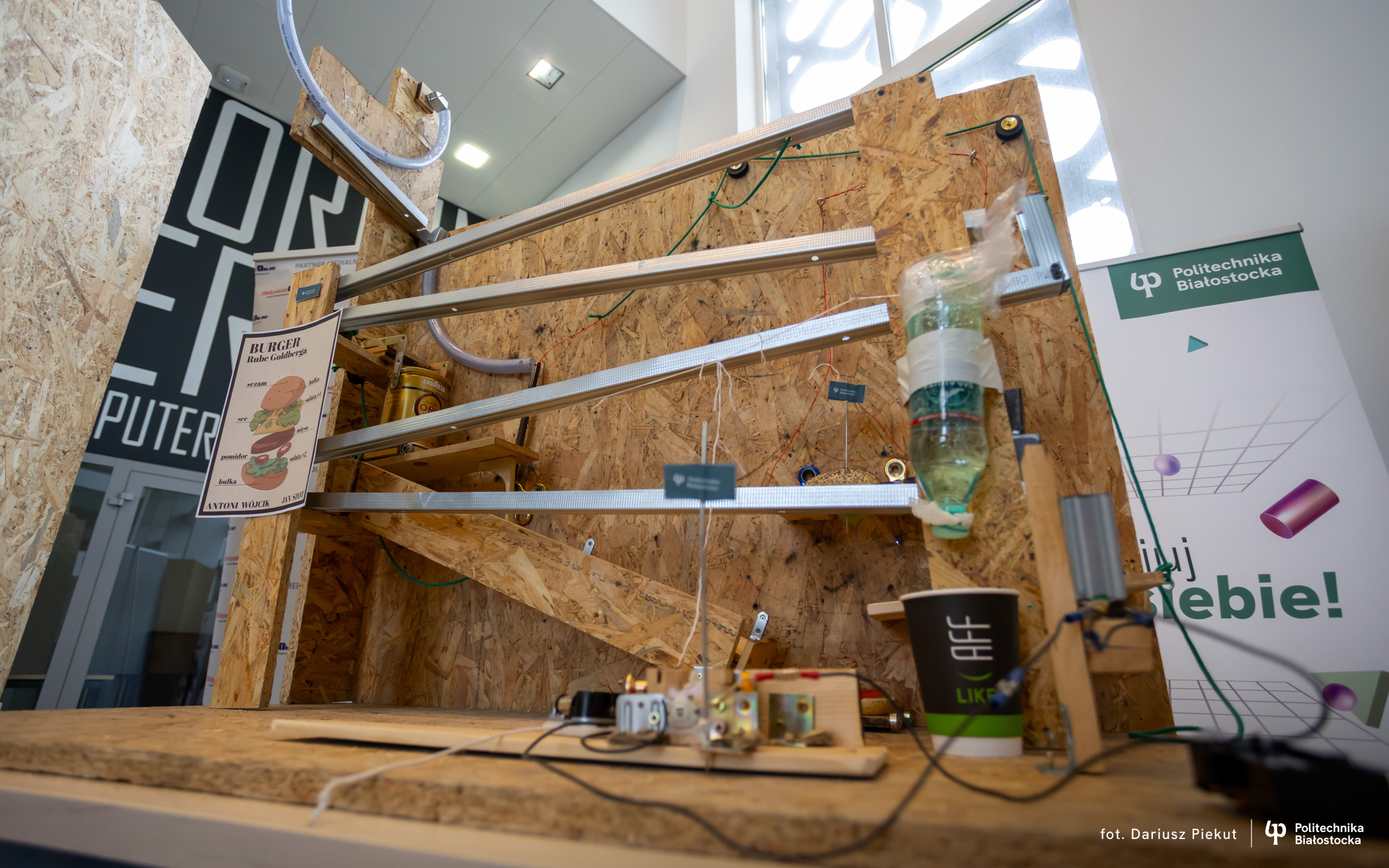 Maszynę, na wzór tej, którą zbudował Rube Goldberg, sześć lat temu skonstruowali studenci, licealiści i pracownicy Politechniki Białostockiej. Projekt okazał się być wspaniałą integracyjną zabawą, która uruchomiła kreatywność twórców. Takimi zdolnościami: umiejętnością pracy w grupie i determinacją do rozwiązywania napotykanych problemów, powinni wykazywać się przyszli inżynierowie.